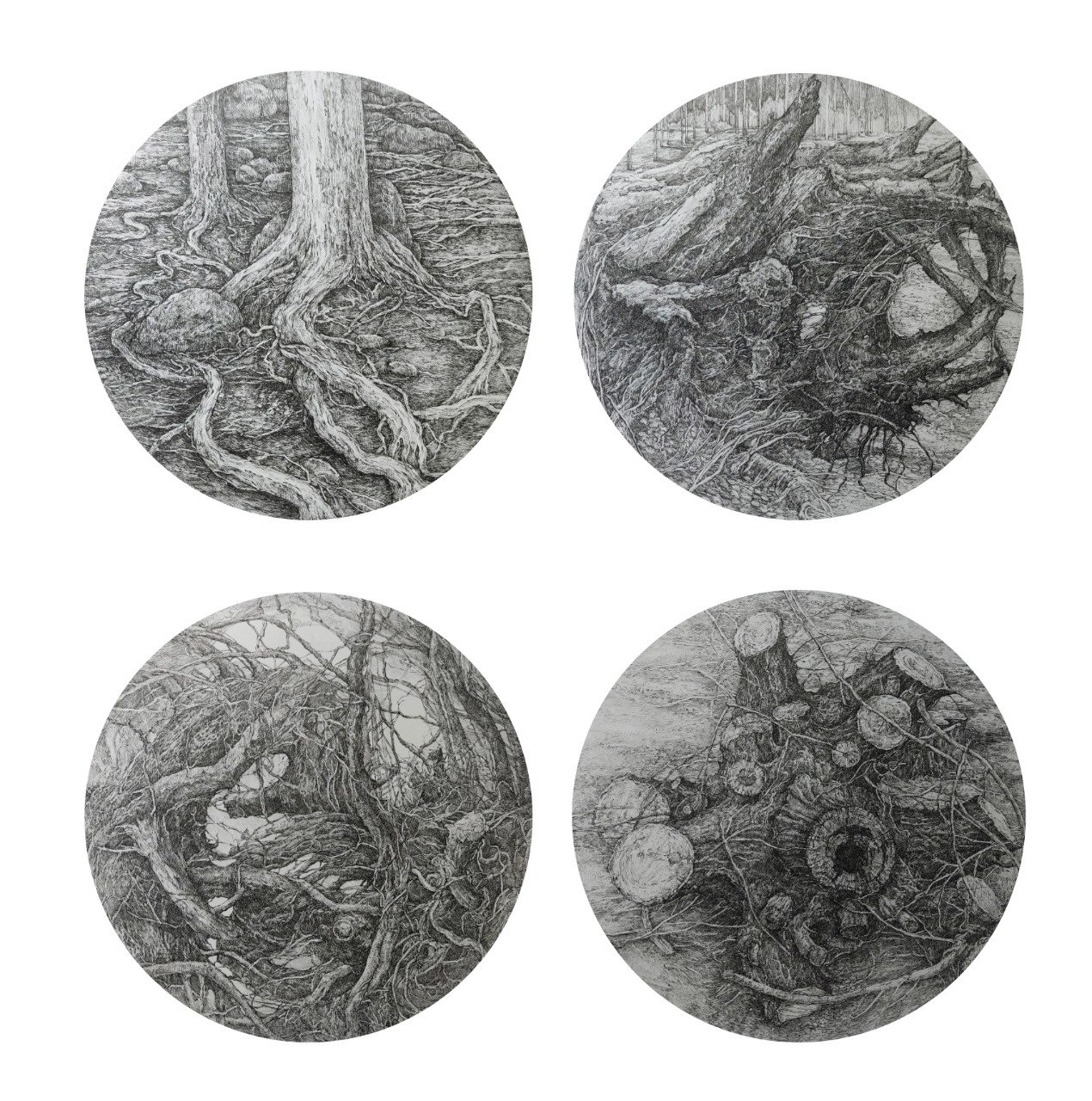 Branches and tree trunks intertwined convey a unique state of searching for a path to understanding and acceptance.