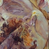 The painting depicts a female figure in a complex, spectacular painting technique. The work is done with impasto brushstrokes, creating a sense of texture and plasticity of fabric, reminiscent of lace or flower petals. The body seems to merge with the natural forms of nature, acquiring organicity and tenderness.