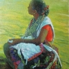 The painting "Dedi Goa" is a painting that conveys the colors and traditions of Indian culture. The canvas depicts a woman in bright national clothes, sitting on the grass. Her outfit is replete with rich shades of red, white and green, and her hair is decorated with flowers, which gives the image a special sophistication and authenticity.