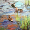 The painting "Ducks" is a painting that conveys the atmosphere of tranquility and harmony of nature. The artist depicted three ducks swimming on the surface of a pond, among soft sun glare and reflections of the sky in the water.