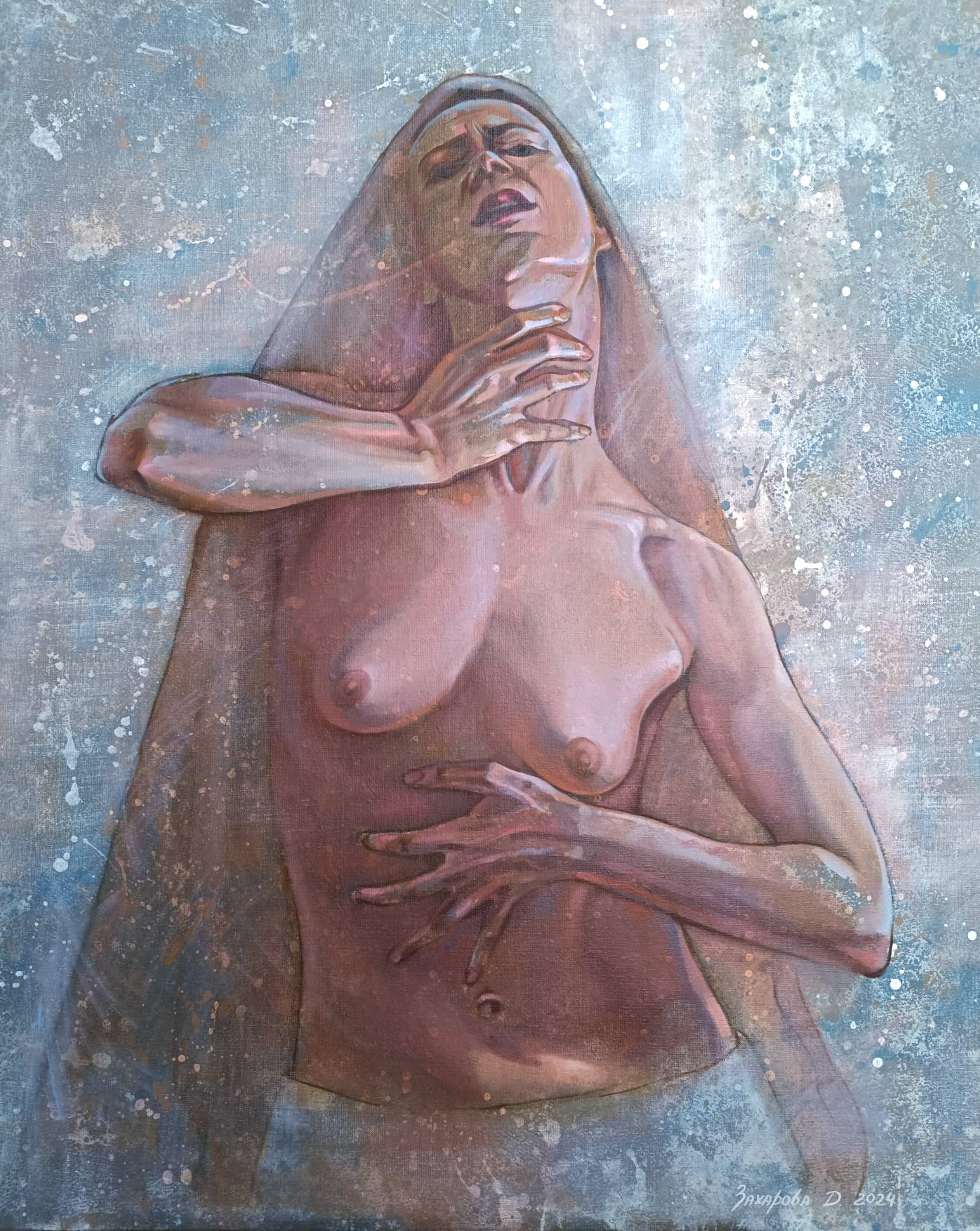 The painting by DariArt «Where feelings live» is a powerful and candid exploration of female emotionality, fragility, and strength. The artist, using a limited but expressive color palette and a technique combining realism with elements of expressionism, creates an atmosphere of tension, pain, and simultaneously inner freedom. It is not just a depiction of a naked woman but rather a visual cry of the soul, revealing the most intimate experiences, fears, and hopes.