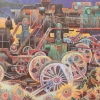 Картина Давида Харебова «Летний стимпанк» представляет собой оригинальное сочетание индустриального ландшафта и природной красоты, создающее атмосферу фантастического мира, где технологии прошлого переплетаются с живой природой. Художник, используя детализированную манеру письма и насыщенную, но приглушённую цветовую палитру, создаёт ощущение ностальгии, романтики и некоторой меланхолии, свойственное стилю стимпанк и его увлечению викторианской эпохой и паровыми технологиями. Это не просто изображение поездов и подсолнухов, а своего рода визуальный рассказ о мире, где технологии и природа сосуществуют в гармонии и противостоянии, создавая уникальную и захватывающую картину.
