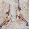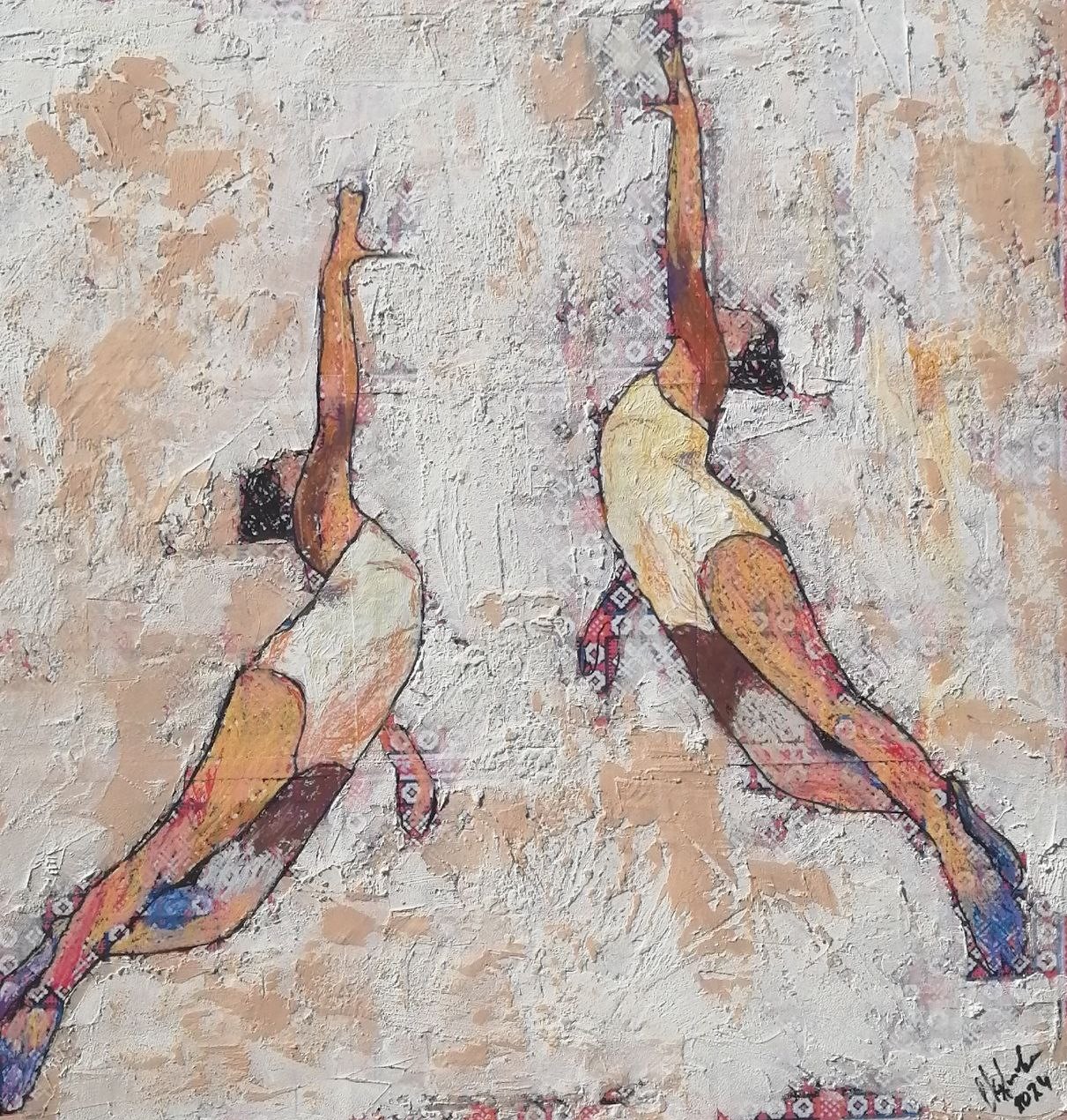 В работах используется многослойность фактур, как способ передать слои воздействий и истоков предков.
