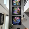 В центре внимания на полотне — яркий зимородок, расположившийся на одном из бутонов лотоса. Его оперение, сочетающее в себе оттенки синего, оранжевого и белого, создаёт ощущение живости и энергии. Птица словно замерла в ожидании, внимательно наблюдая за происходящим вокруг. Художница тщательно прорабатывает детали оперения, передавая его текстуру, блеск и игру света. Зимородок словно является символом удачи, процветания и внутреннего покоя.