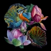 Контрастный чёрный фон создаёт ощущение глубины и таинственности. Чёрный фон подчёркивает красоту зимородка и лотосов, делая их ещё более выразительными.