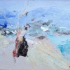 В центре внимания полотна — размытый образ, который можно интерпретировать как фигуру человека или скалу на берегу моря. Этот объект, выполненный в тёмных, приглушённых тонах, создаёт ощущение загадочности и неопределённости. Художник использует различные оттенки серого, коричневого и чёрного, чтобы передать текстуру, объём и связь объекта с окружающей средой. Объект словно является точкой опоры, центром композиции и источником лирического настроения.
