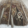 Основной элемент картины — юрта, традиционное жилище кочевых народов Севера. Художник детально изобразил её конструкцию, выполненную из веток, шкур и других природных материалов. Юрта, надёжная и тёплая, служит символом защиты, дома и уюта в суровых условиях.
