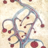 Instead of leaves or traditional fruits, red spiral formations appear on the branches. These «buds» or «fruits» are symbols of emerging, yet unformed feelings, desires, and identities. The red color speaks of passion, energy, and the potential danger that accompanies the formation of a new «Self».