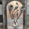 The entire group protrudes from the vase against the backdrop of an arch framing a bright golden space. The gold here has a dual meaning: it can symbolize luxury or serve as a shining but unattainable background. The walls on either side of the arch are gray and textured, creating a sense of solidity and alienation.