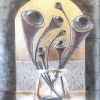The title «Insulation» is key. These strange «flowers» are not meant to absorb the beauty of the world but to capture sounds. Yet, enclosed in the vase and surrounded by walls, they are likely isolated from the real world and capture only echoes or noises of their own closed system. The painting speaks of isolation through an exaggerated desire to listen and be heard.