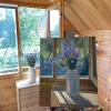 A warm sunny day and the window is wide open. Sun rays play on the ultramarine cornflowers as if they were real gemstones.