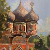 Художница выбрала крупный план, в который поместились только купола храма.