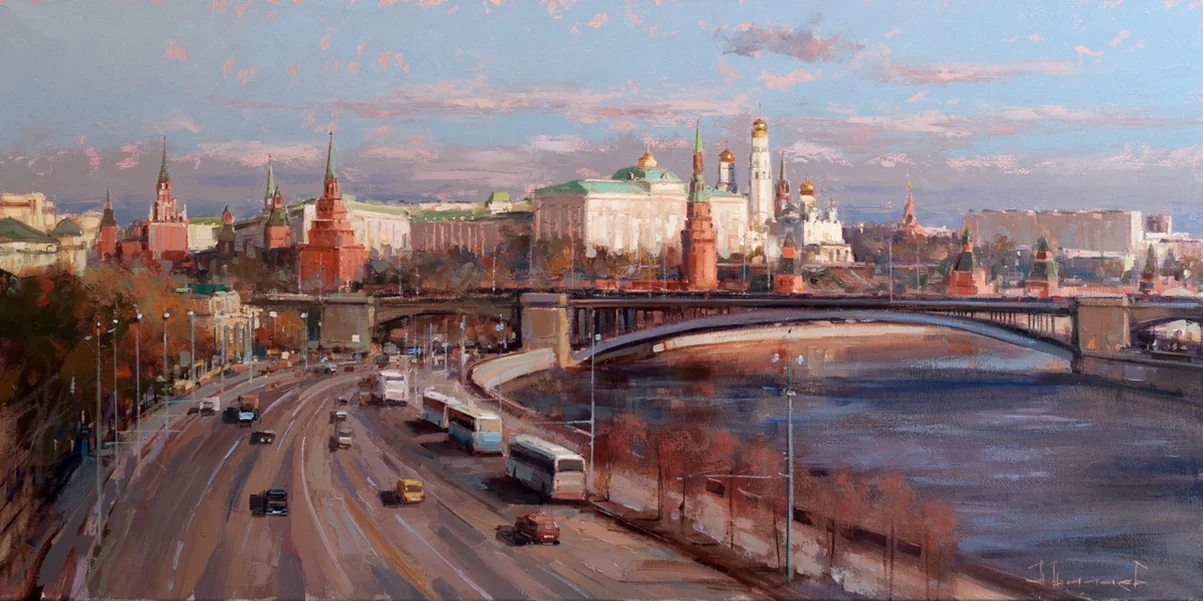 This original artwork "Morning of October, Borovitsky hill" was created by the contemporary Russian master Alexey Shalaev and is available for sale online.