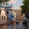 This original artwork "After a little rain on Thursday. Skaryatinsky lane" was created by the contemporary Russian master Alexey Shalaev and is available for sale online.