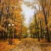 Уличные фонари, также расположенные по обеим сторонам аллеи, придают пейзажу нотку романтики и ностальгии. Их свет, пробивающийся сквозь листву, создаёт ощущение тепла и уюта.