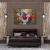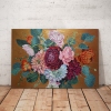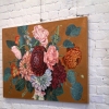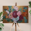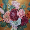 A floral composition in vintage style, using textured paste, with a relief rough background in golden-bronze color that emphasizes the delicacy and fragility of the beautiful flowers.