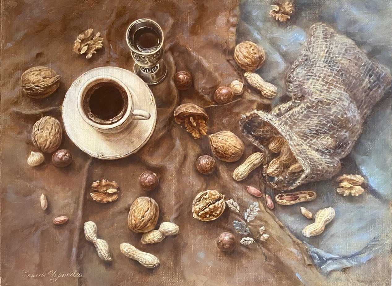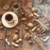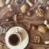 Black coffee with nut liqueur, scattered nuts — everything moves to the rhythm of jazz.