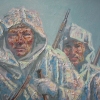 Картина “Separate Ski Battalion” (Отдельный Лыжный Батальон) художника Сергея Назарова – это мощный и пронзительный взгляд на войну, лишенный пафоса и героизации. Полотно, выполненное в приглушенных тонах и с использованием экспрессивной манеры письма, передает суровую реальность военного быта, мужество и стойкость простых солдат.