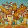 The painting "Pear City" is a magical combination of architecture and nature, creating a fantastic world filled with coziness and mystery. The canvas depicts a city that seems to have grown from ripe pears, which are harmoniously woven into the structure of the houses.