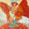 The painting "Firebird" is a bright and fascinating work of art, filled with symbolism and fantasy. The canvas depicts a mysterious female figure, harmoniously combining human and avian features. Her powerful wings, executed in rich shades of red and gold, resemble the plumage of a fairy-tale firebird, symbolizing rebirth, inspiration and magic.