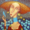 The painting is made in a style reminiscent of surrealism with elements of naive art. It evokes a feeling of lightness, harmony and peace, inviting the viewer to reflect on beauty, freedom and inner experiences.