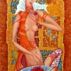 Her body is intertwined with exquisite ornamental elements, and her clothes and background are filled with a warm color scheme - shades of gold, orange and red, which gives the picture a feeling of passion and energy. In her hands she holds a cherry, and in front of her is a plate filled with these juicy fruits - this can symbolize the sweetness of pleasure, sensuality and fertility.