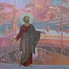 За спиной апостола открывается вид на город, с его храмами и зданиями, символизирующими историю и культуру. Архитектурные формы упрощены и стилизованы, что придает пейзажу сказочный характер. Город, озаренный светом, словно преображается под влиянием веры.