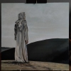 В центре композиции – одинокая фигура человека, стоящего на краю пустыни или холма. Его лицо скрыто под капюшоном, что делает его образ загадочным и безликим. Он может быть любым человеком, каждым из нас, находящимся в поиске своего пути.