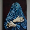 В центре композиции – женская фигура, полностью скрытая под синей тканью. Лица не видно, только руки, перекрещенные на груди, выдают человеческое присутствие. Ткань, украшенная сложным орнаментом, создает ощущение роскоши и загадочности.