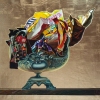 At the center of attention of the painting is a vase filled with candy wrappers. The vase, executed in the classical style, with elegant curves and patterns, creates a sense of value and significance, contrasting with the simplicity and utility of the wrappers. It is like a treasury, storing not jewels, but memories, emotions, and moments of joy.