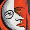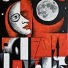 The image of the moon and stars creates an atmosphere of mystery and reverie, reminding of the vastness of the universe and our place in it. A face with a closed eye and delicate features speaks of inner concentration and deep self-knowledge. Red colors symbolize passion, energy and brightness of feelings, while black adds a touch of mystery and introspection.