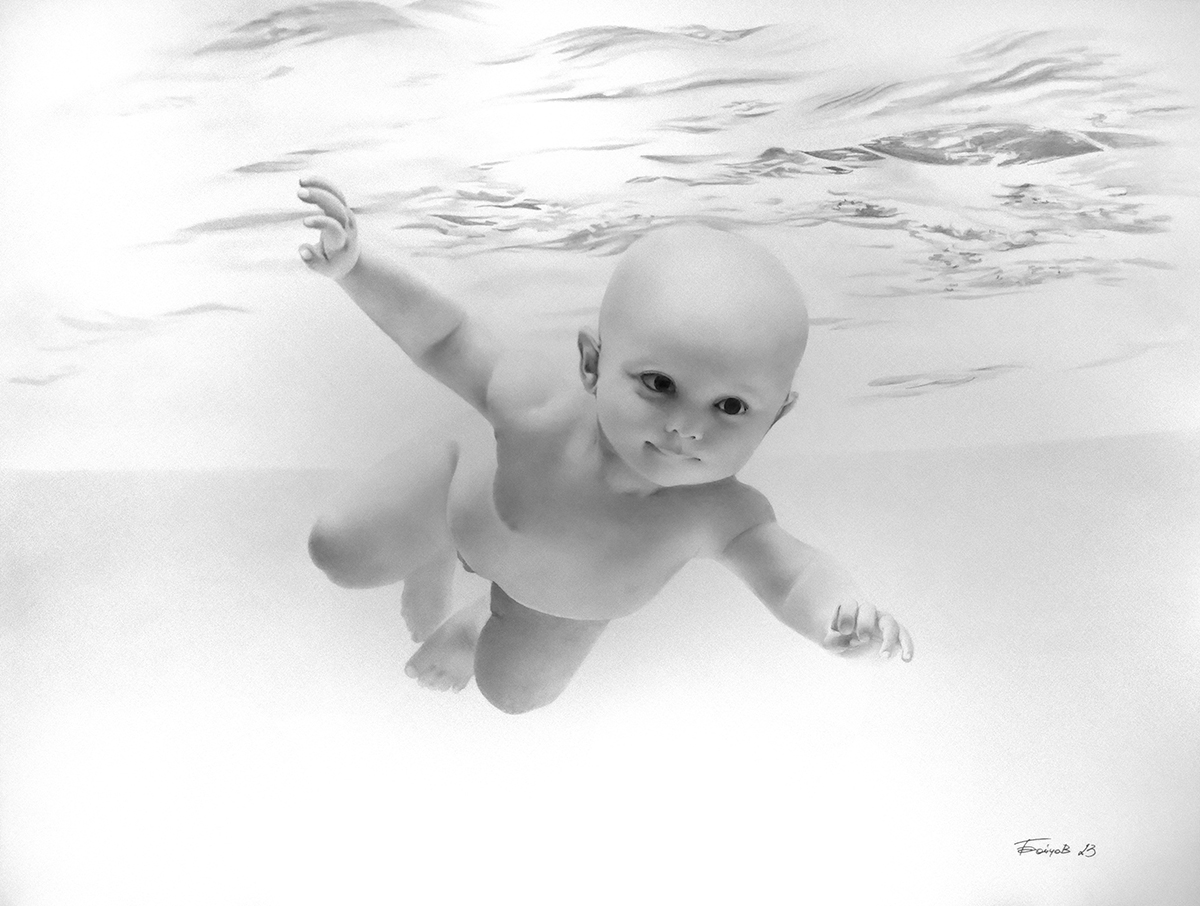 Pencil on high quality paper "BRISTOL". Super white and smooth. The density is 250 grams.