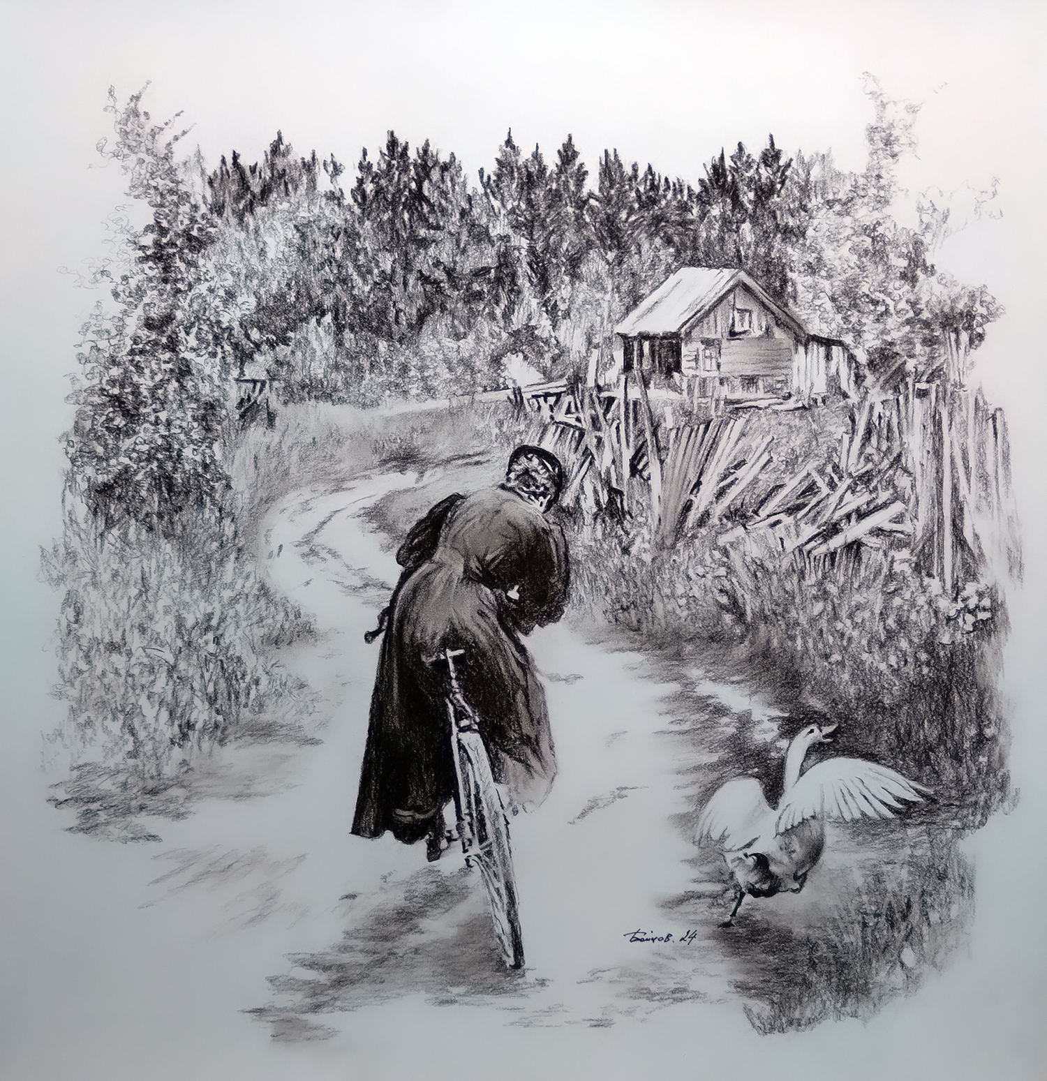 Сепия на бумаге. Работа подписана автором.
