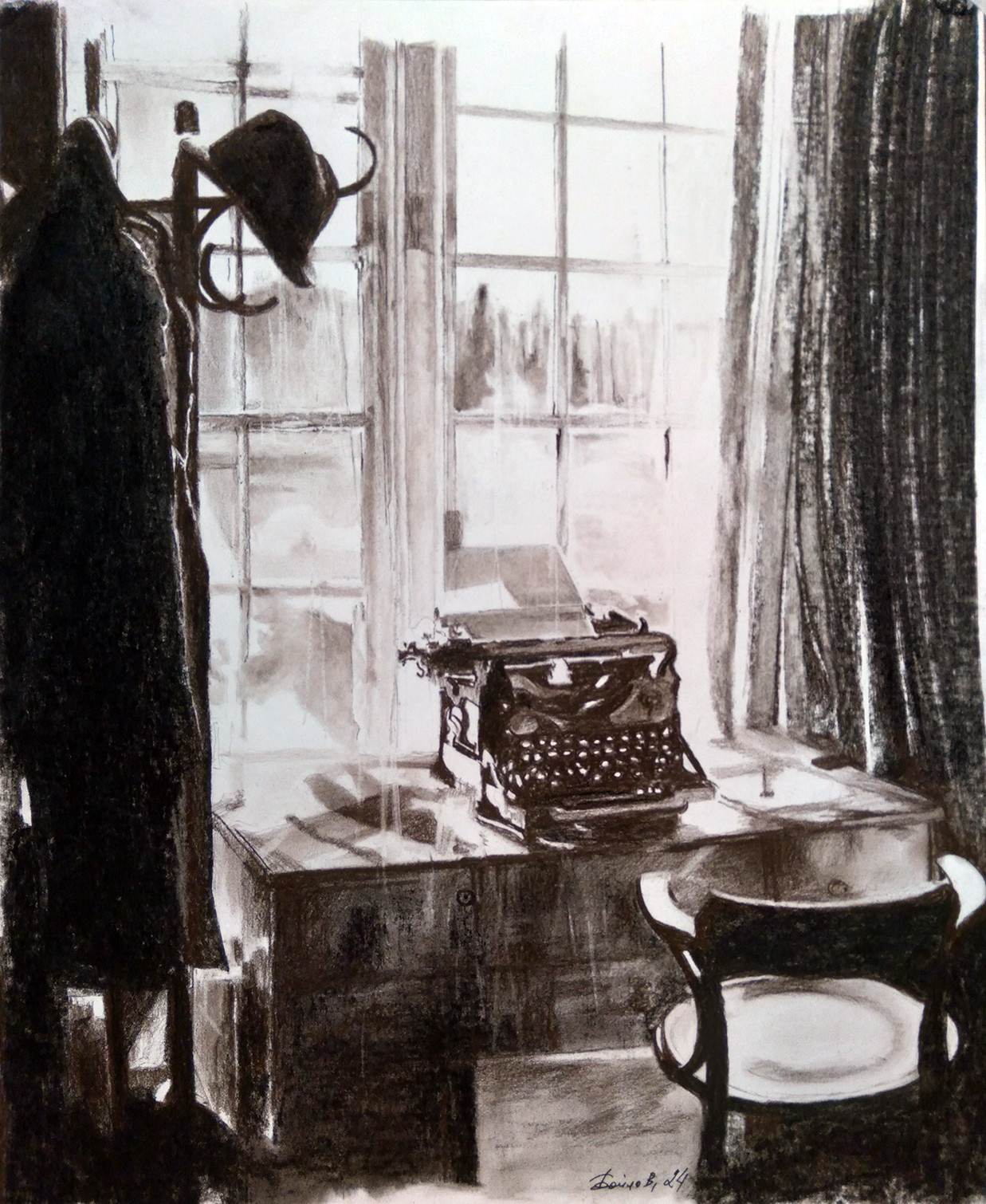 Сепия на бумаге. Работа подписана автором.