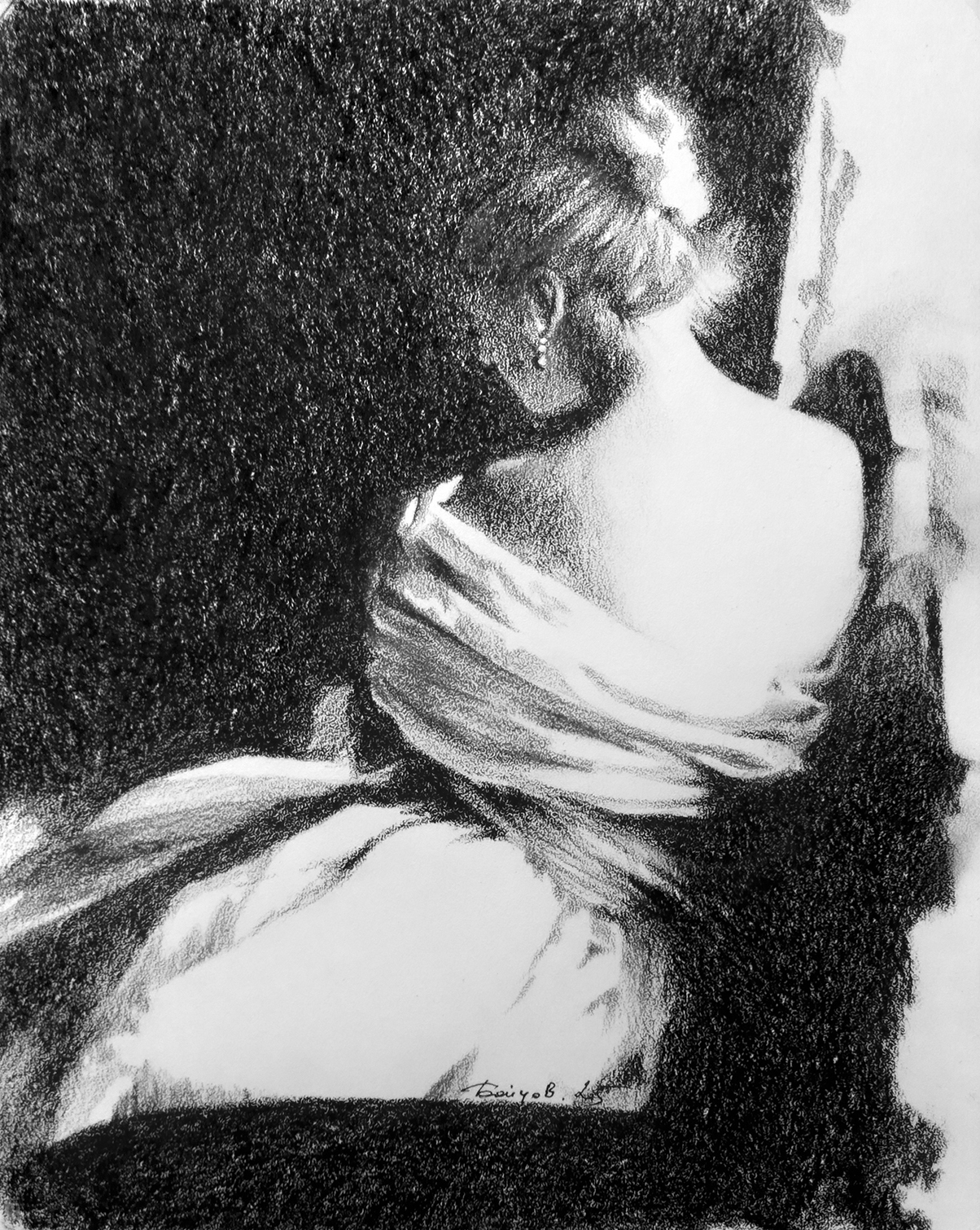 Уголь на бумаге. Работа подписана автором.