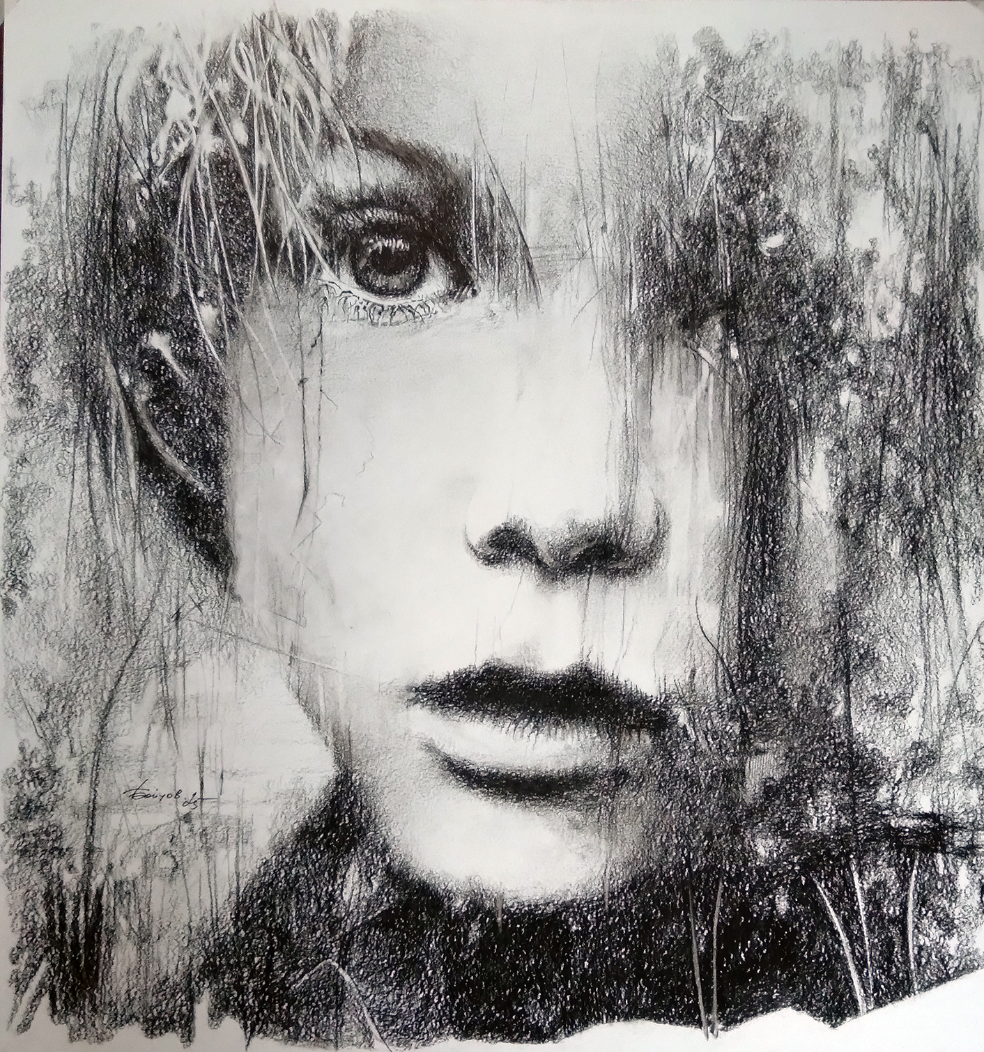Уголь на бумаге. Работа подписана автором.