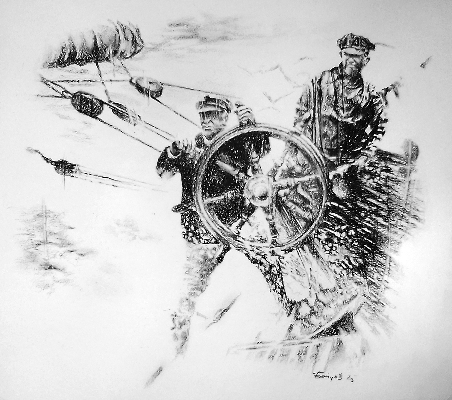 Уголь на бумаге. Работа подписана автором.