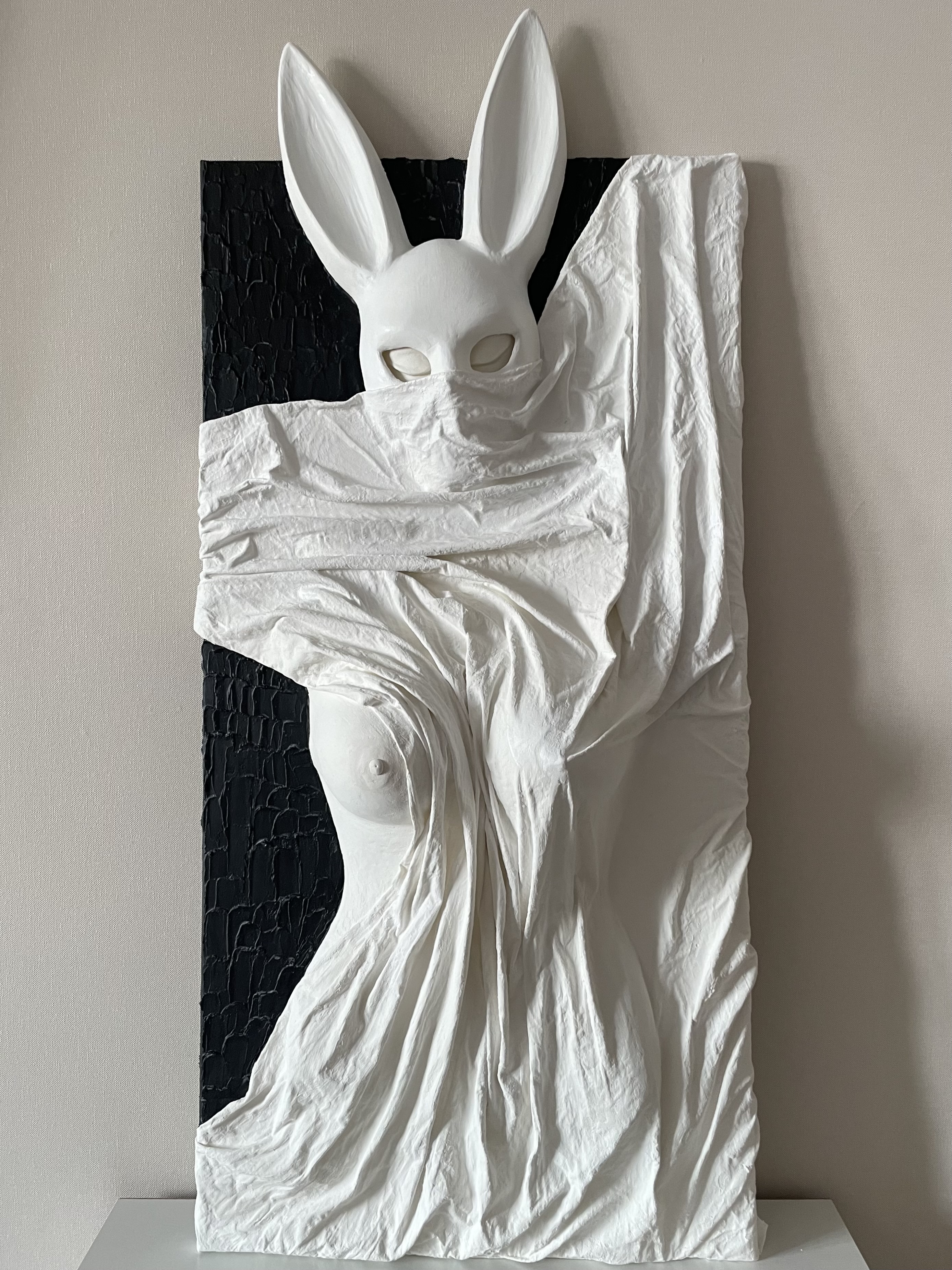 Material: canvas on stretcher, texture paste, plaster, fabric, acrylic paints, acrylic varnish.
