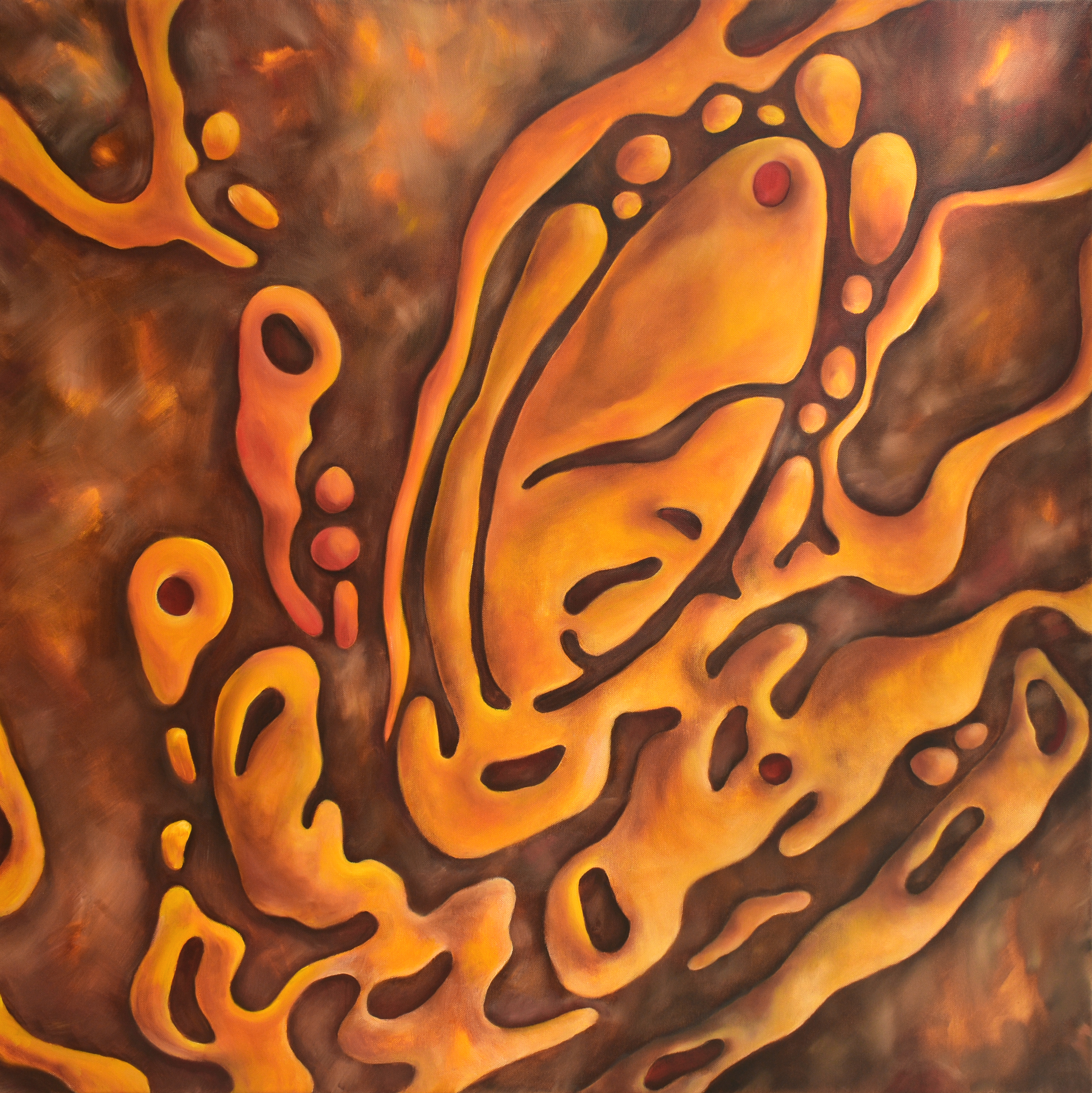 Keywords... large oil painting, abstract, amber, gold, yellow, brown, movement, water, drops, artist Marina Venediktova