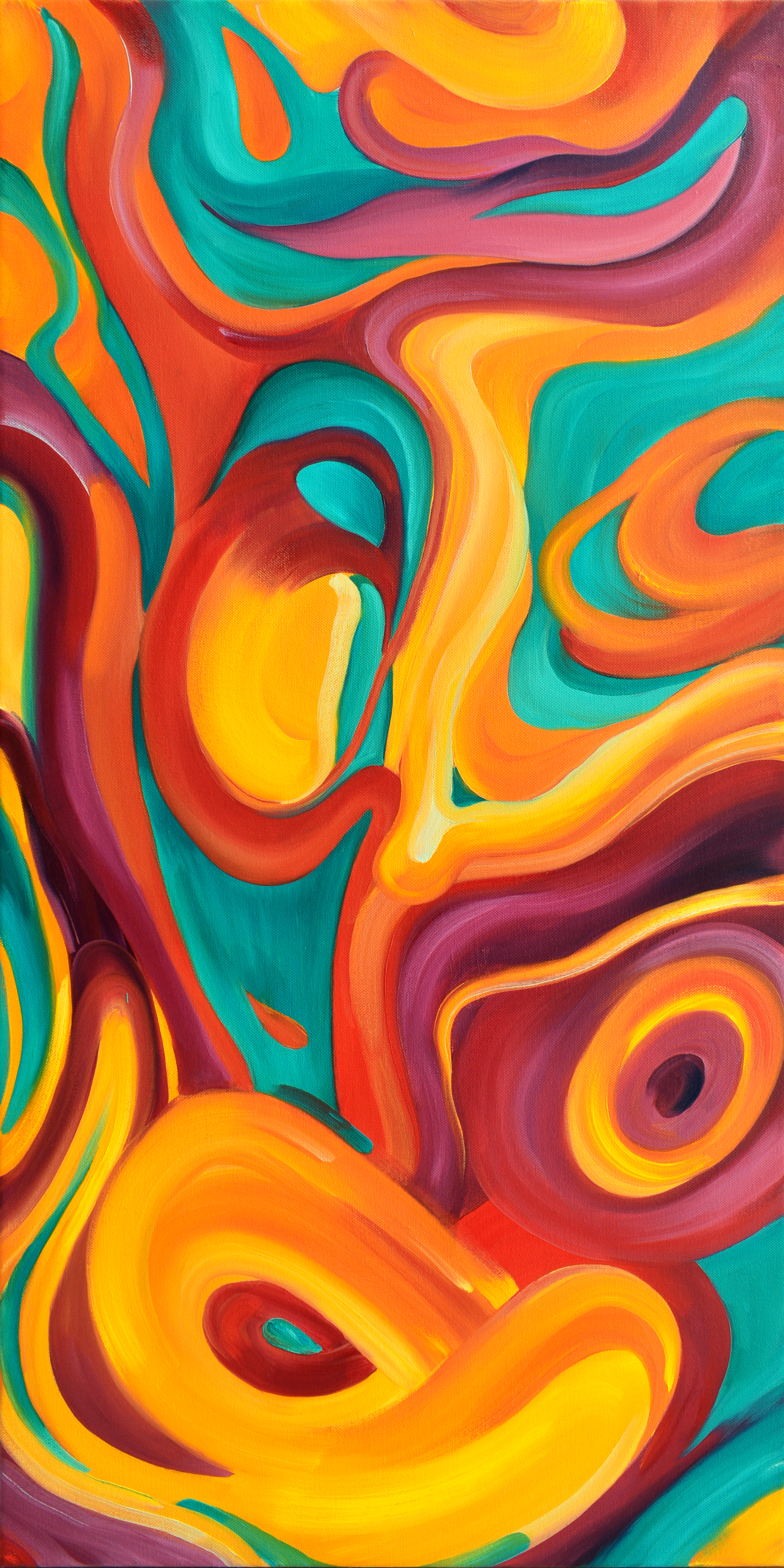 Keywords... oil painting, abstract, red, green, emerald, yellow, flowers, smooth lines, color transitions, artist Marina Venediktova, gift idea, interior abstraction