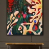 Keywords... large oil painting, abstract, pink, red, green, blue, movement, water, drops, flowers, artist Marina Venediktova, gift idea, interior abstraction