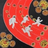Positive-patriotic fantasies about space. Author's technique: canvas, acrylic, textile, 2025.