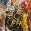In this painting, I explore the vivid and dynamic nature of medieval games, capturing the motion and emotion of knights and steeds in a semi-abstract style. Using acrylics, I layer colors and shapes to evoke the drama and excitement of the era, blending figurative elements with abstract forms to highlight the turbulence and energy of historical competitions.