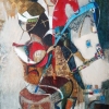 В центре композиции – сложное переплетение геометрических фигур, ярких узоров и неожиданных цветовых сочетаний. Нет четких границ и правил, всё находится в движении, трансформируется и меняется, подобно стеклышкам в калейдоскопе.
