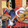 In this piece, I poured warmth into every brushstroke—capturing the rhythm of music, the quiet comfort of companionship, and the gentle presence of a cat. The acrylics bring boldness to the figures, blending emotion with everyday life. This painting invites your home to embrace cozy moments and heartfelt connection, vibrating softly with melodies of love and tranquility.