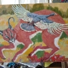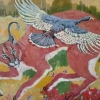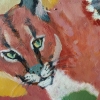 Caracal hunting guinea fowl. Painting from the series "Wild Africa".
