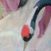 Фон картины выполнен в мягких пастельных тонах, что придает работе атмосферу спокойствия и гармонии. Картина передает красоту природы и изящество журавлей, создавая ощущение умиротворения и связи с окружающим миром.