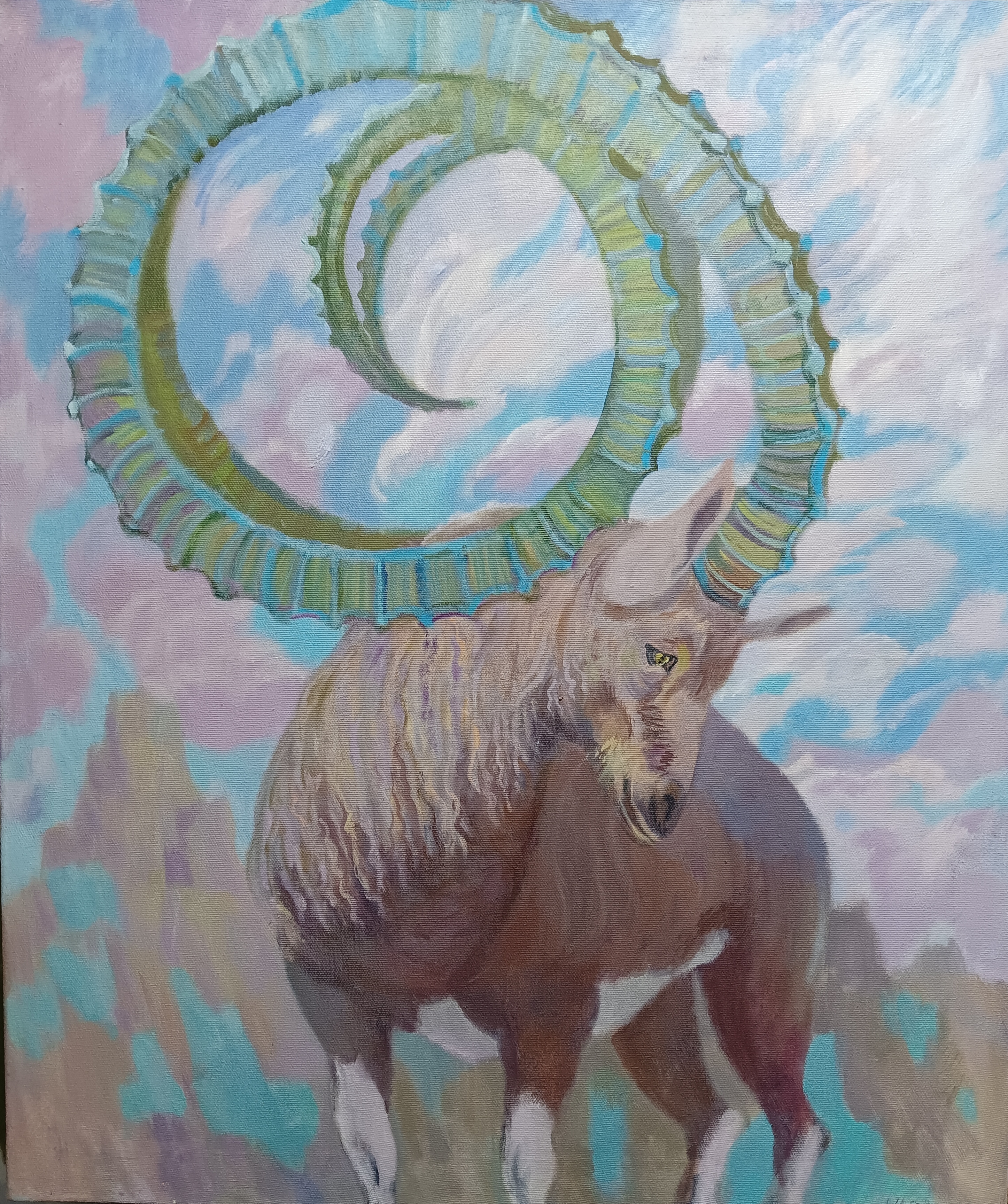 The title of the painting «Ibeks the Mountain Climber» reflects the artist’s main idea: to show the strength and endurance of the mountain goat, its ability to overcome any obstacles and conquer the highest peaks.
