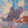Moskaleva employs a technique close to expressionism, with expressive brushstrokes and bold color choices. She aims not for photographic accuracy but rather to convey emotions and sensations. The colors in the painting are contrasting yet harmoniously combined, creating an overall impression of dynamism and energy.