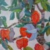 In the foreground is a tree branch covered with orange, lantern-like physalis fruits. Among this bright foliage, several birds are nestled, forming a kind of bird choir.